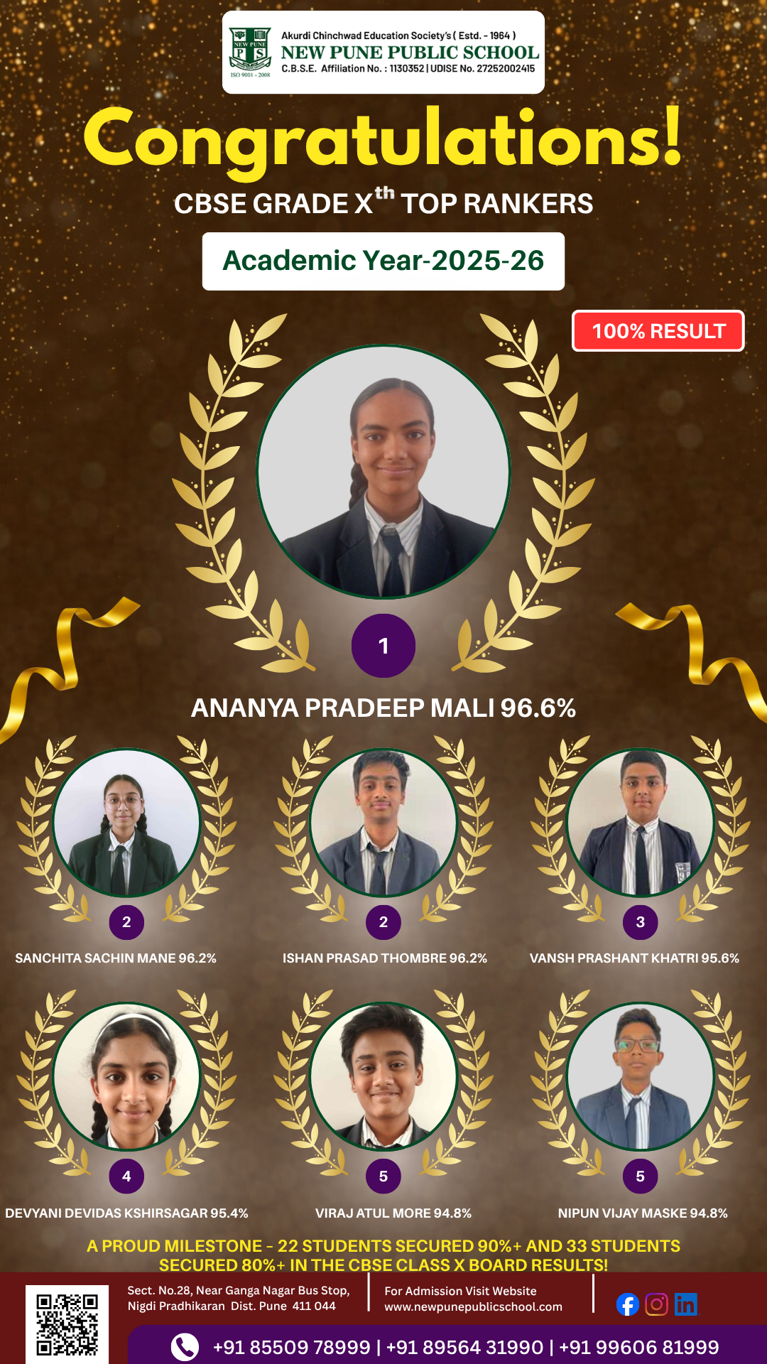 At New Pune Public School, we take pride in celebrating the remarkable achievements of our students. Our top achievers have consistently excelled in academics, sports, and extracurricular activities, setting high standards for excellence.